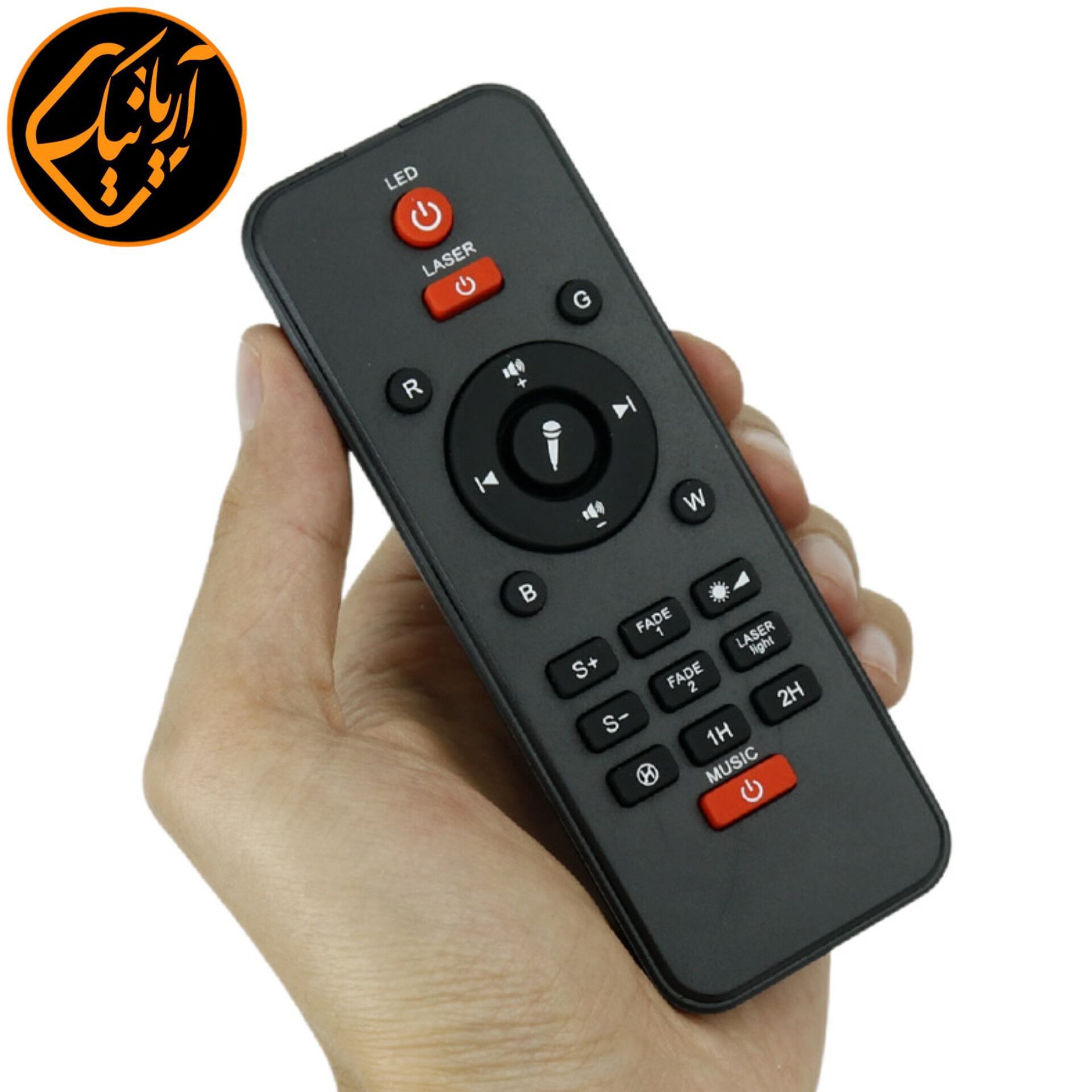 ارائه یک عدد ریموت کنترل به همراه محصول به منظور مدیریت نورپردازی و فایل در حال پخش از راه دور